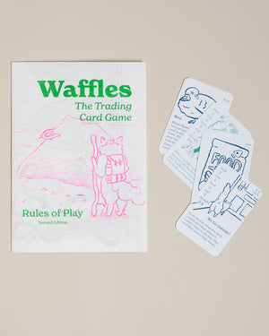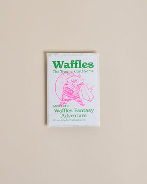 Waffles, most courgaous son of his house, has finally gone and accepted a quest! Enjoy 8 randomly selected, hand-printed art cards for yon trading card game, based on the joys and perils he enounters!